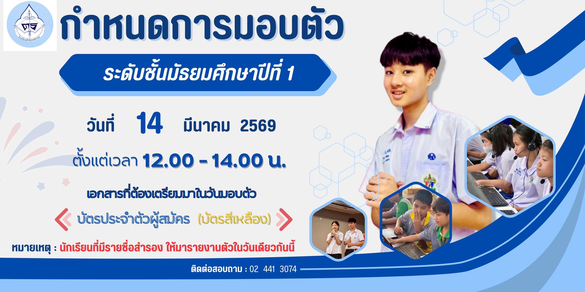 ประกาศ รายงานตัวและมอบตัวนักเรียนใหม่ระดับชั้นม.1 ปีการศึกษา 2569