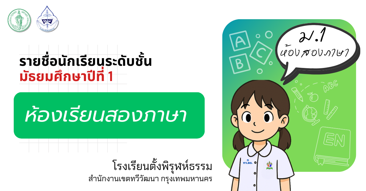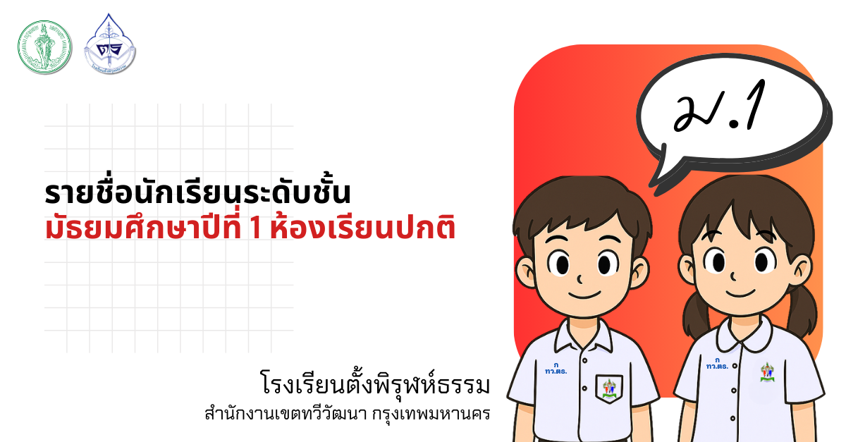 รายชื่อผู้ผ่านการสอบคัดเลือกเข้าเรียนระดับชั้นมัธยมศึกษาปีที่ 1 ห้องเรียนปกติ
