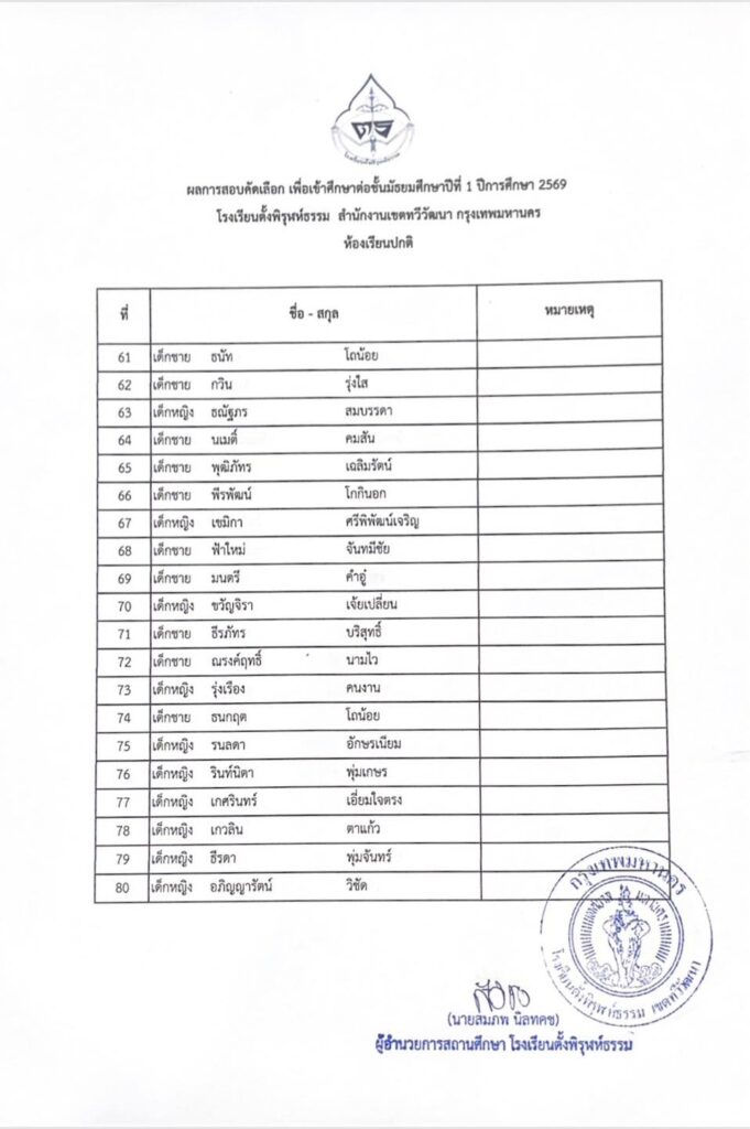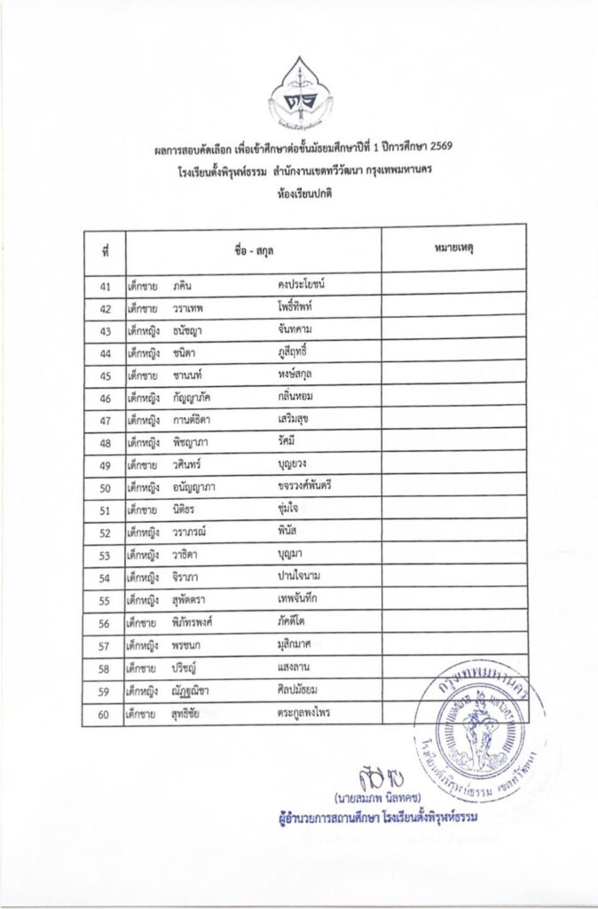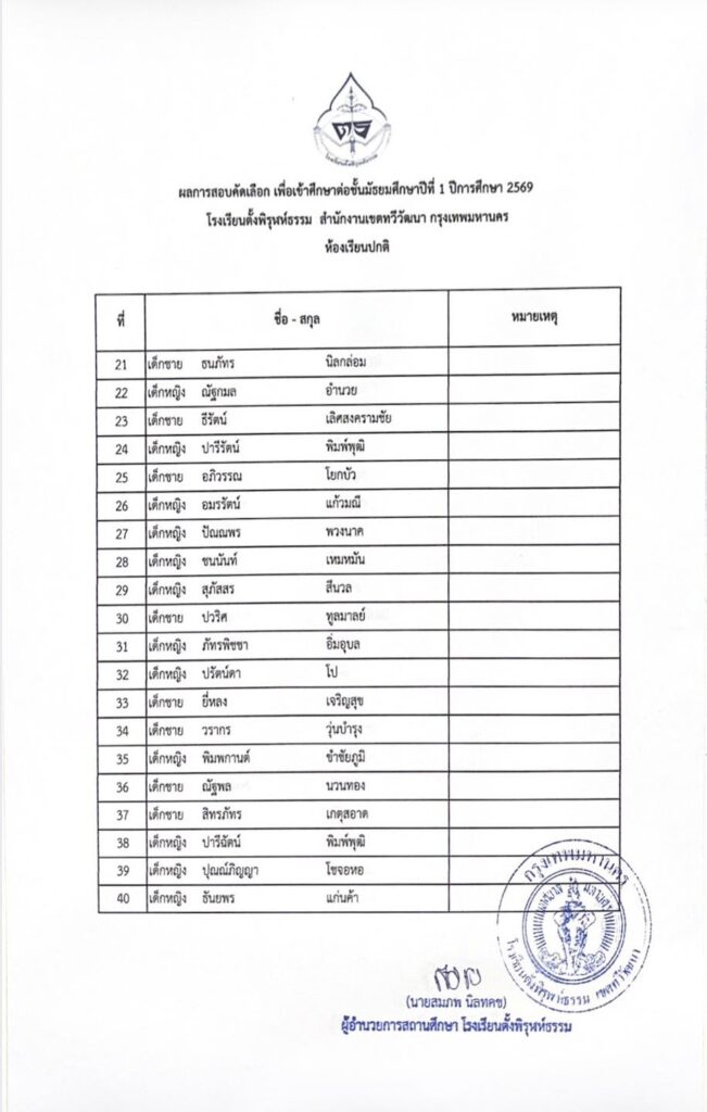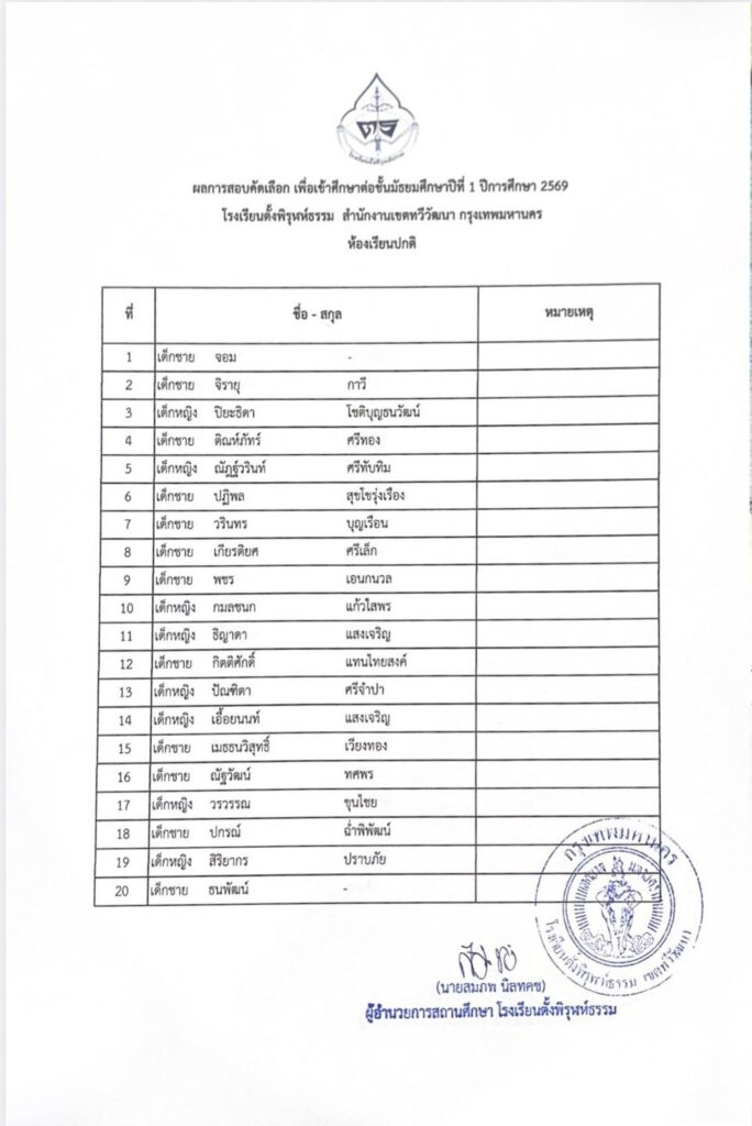 รายชื่อผู้ผ่านการสอบคัดเลือกเข้าเรียนระดับชั้นมัธยมศึกษาปีที่ 1 ห้องเรียนปกติby adminon Posted on 14/03/202614/03/2026 ประกาศรายชื่อผู้ผ่านการสอบคัดเลือกเข้าเรียนระดับชั้นมัธยมศึกษาปีที่ 1 ห้องเรียนปกติ ประจำปีการศึกษา 2569 FacebookShare on XLinkedInWhatsAppEmailCopy Link